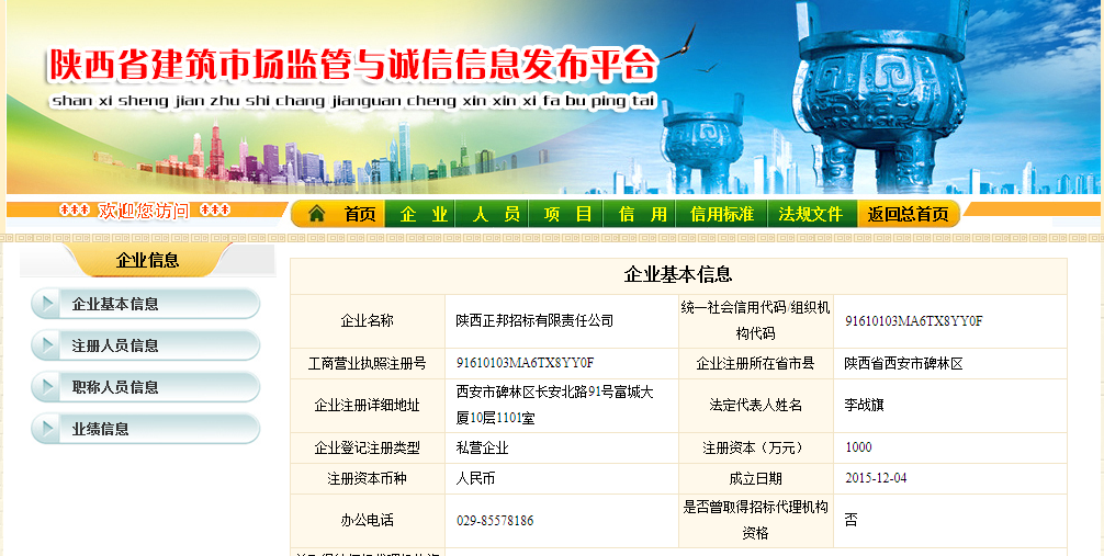熱烈祝賀“陜西正邦招標(biāo)有限責(zé)任公司”招標(biāo)代理工程資質(zhì)喜獲批準(zhǔn),正式入駐陜西省建筑市場(chǎng)監(jiān)管與誠(chéng)信一體化平臺(tái)網(wǎng)站(陜西省住房和建設(shè)廳),可以進(jìn)行陜西省內(nèi)工程項(xiàng)目招標(biāo)代理工作。