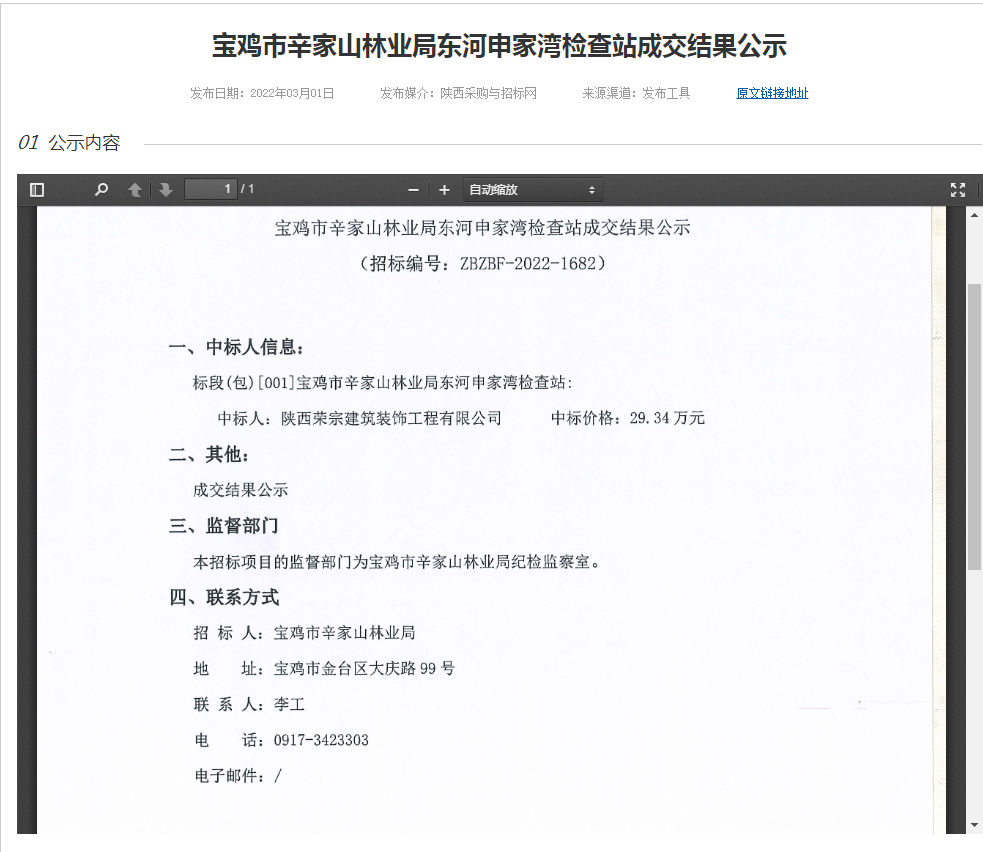 寶雞市辛家山林業(yè)局東河申家灣檢查站成交結(jié)果公示