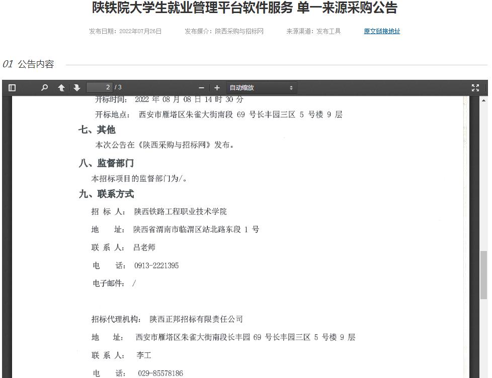 陜鐵院大學(xué)生就業(yè)管理平臺(tái)軟件服務(wù) 單一來源采購(gòu)公告