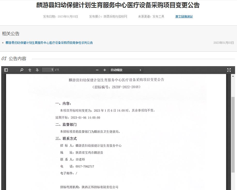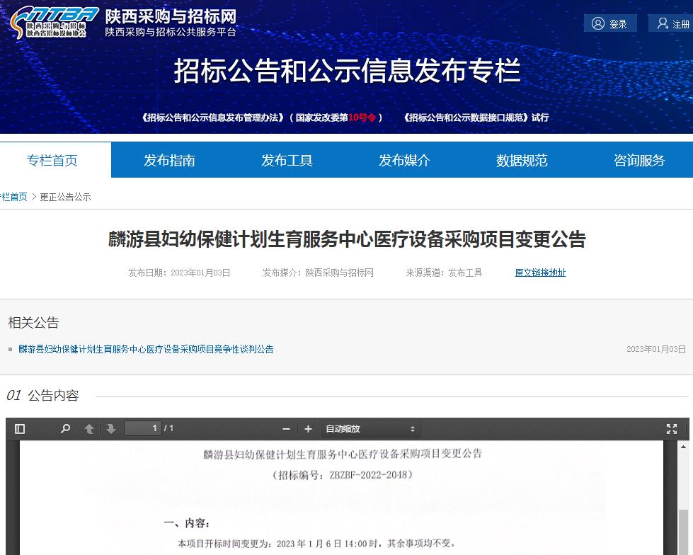麟游縣婦幼保健計劃生育服務(wù)中心醫(yī)療設(shè)備采購項目變更公告