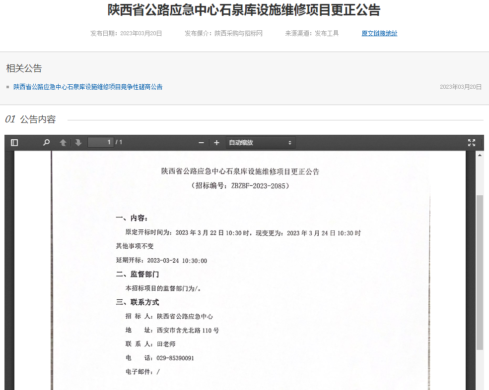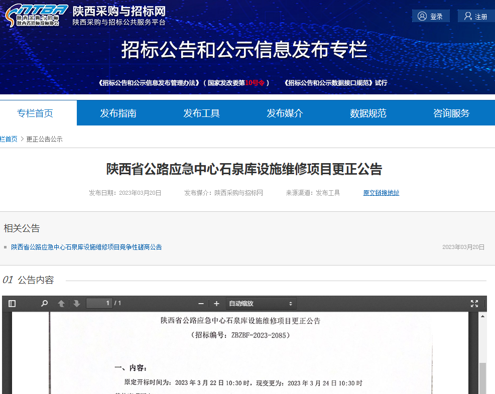 陜西省公路應(yīng)急中心石泉庫設(shè)施維修項目更正公告