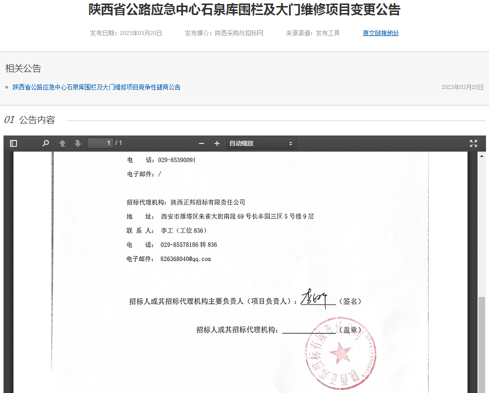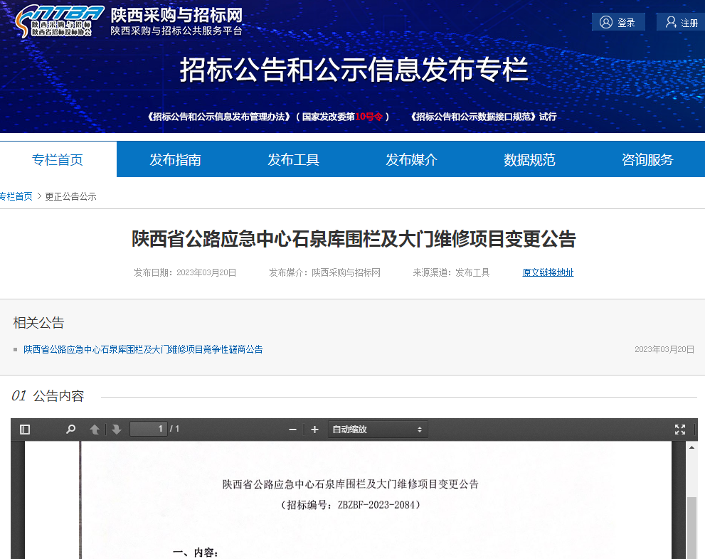 陜西省公路應(yīng)急中心石泉庫圍欄及大門維修項目變更公告