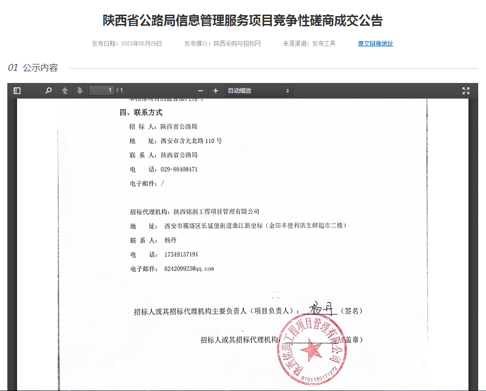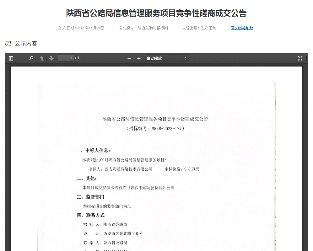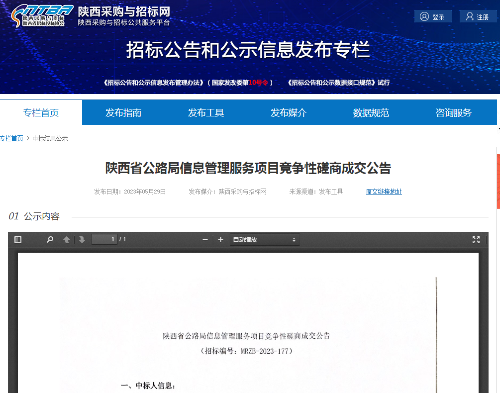 陜西省公路局信息管理服務(wù)項(xiàng)目競爭性磋商成交公告